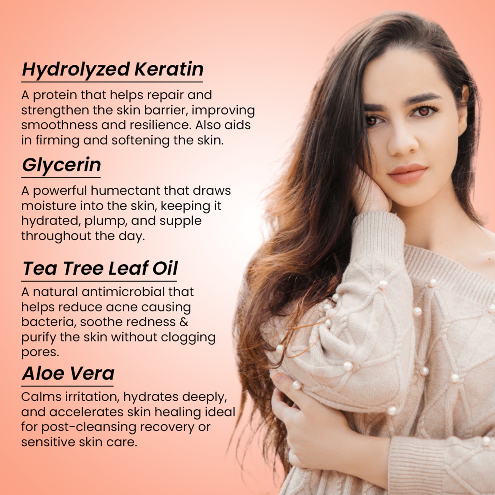 | Scent | Mildly herbal and refreshing — inferred from Tea Tree, Aloe Vera, and essential oils |